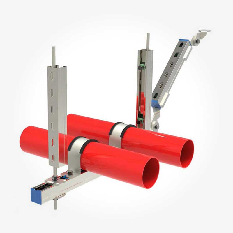 多水管抗震支吊架由集成化承载框架、分组连接件、多向抗震斜撑、高强度锚固件及辅助调节配件组成,各部件协同实现对多管集群的一体化抗震防护: